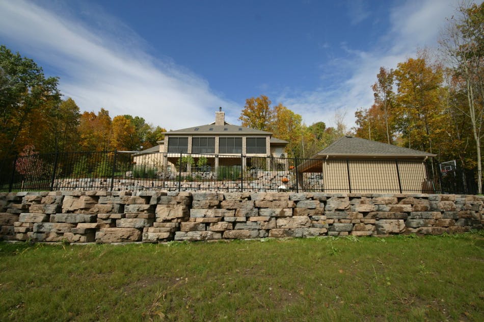 After ruling out natural stone due to engineering and scale concerns, Koudys presented the Siftons with the option of using Rosetta Hardscapes Outcropping Collection, a precast wall system that creates grand, structural walls with the look, colors, and textures of highly weathered natural stone.