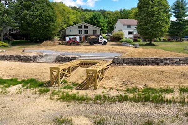 When Treasure Lake was drained for the first time in over a quarter century, the homeowners had the perfect opportunity to get their Rosetta Hardscapes retaining wall and steps installed. With contractor Flock Services leading the installation, the finished project featured: