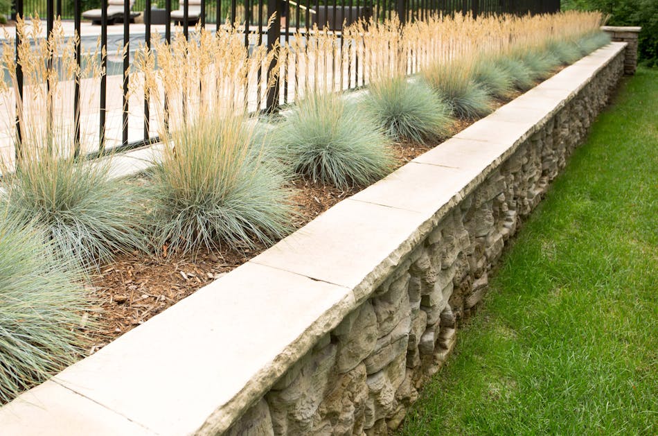 Grand Ledge | Large scale, linear blocks create contemporary landscape walls