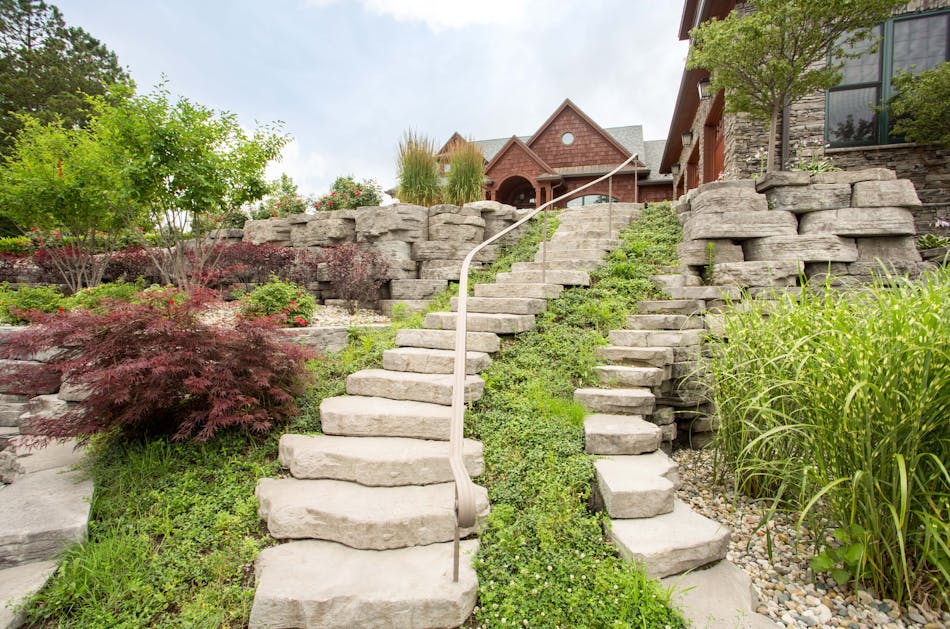 Irregular Steps | Large, natural stone steps create a grand entrance